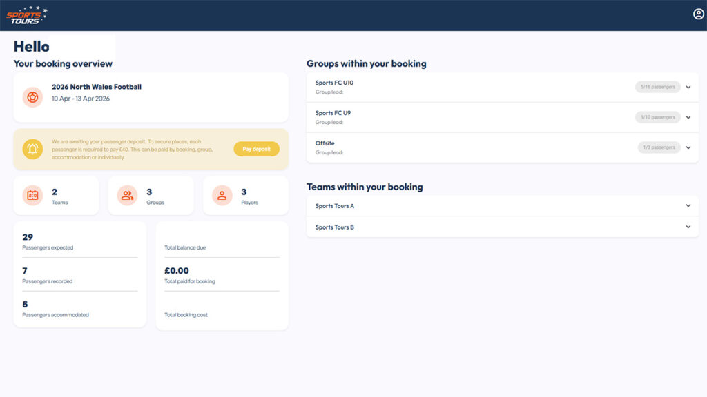 When you book with us, you’ll get access to the Sports Tours Hub, the ultimate playbook for your tour. This online portal helps you manage everything from accommodation to team details in one place. It’s stress-free, convenient, and designed to give you full control over your trip. And don’t worry if you need help along the way, as our team is always ready to step in.