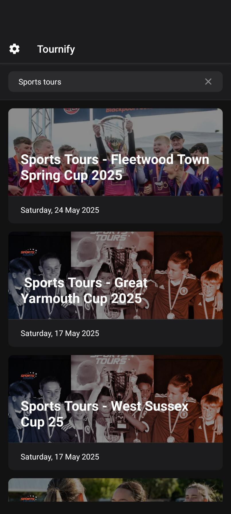 To find your tour, type your tour name in the search box, for example “Great Yarmouth Football Tournament”. Or you can simply search “Sports Tours” and select your tour from the list! It should display a similar screen to the following…
