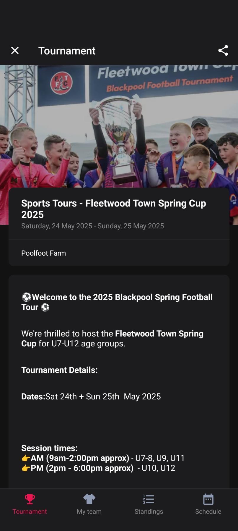 Remember: Tournament fixtures are subject to change up until the day of the event. Stay updated on all changes through the app and website. Major updates will be communicated to group leaders.